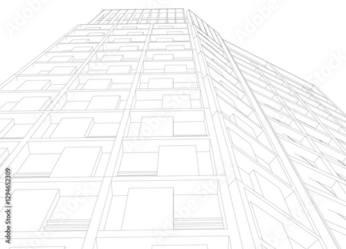 Modern Skyscraper Wireframe. Futuristic Urban Architecture in Abstract Perspective