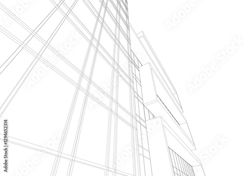Modern Skyscraper Wireframe. Futuristic Urban Architecture in Abstract Perspective