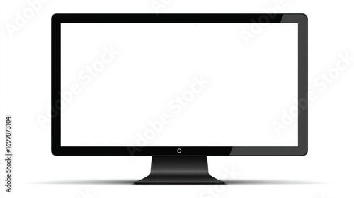 Modern, sleek flat-screen monitor with black frame and stand, against a white background