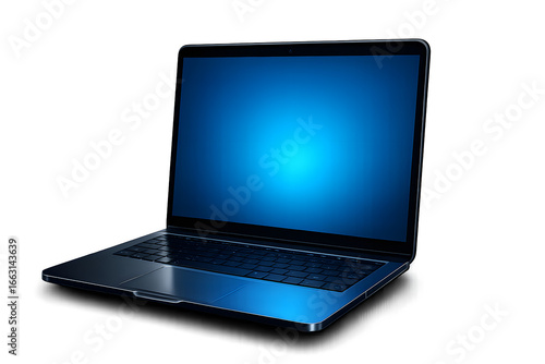 Modern sleek laptop with glowing blue screen symbolizing technology, online business, digital work, and modern computing