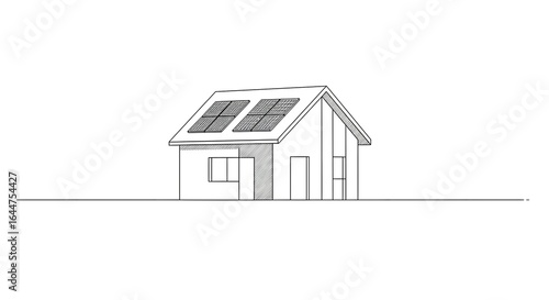 Modern Small House with Solar Panels on Roof in Minimalist Style