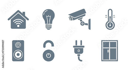 Modern smart home icons featuring connected devices for seamless living convenience and enhanced security automation