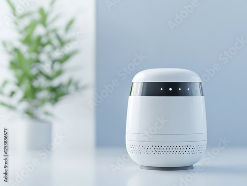 modern smart speaker on a light blue surface