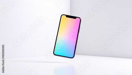 Modern Smartphone Floating in a Minimalist White Studio with Gradient Screen