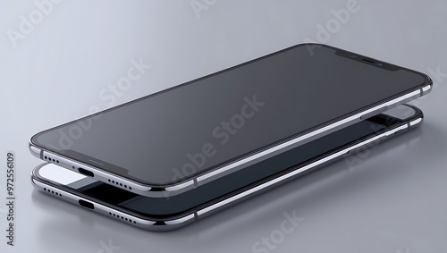 Modern smartphone with a sleek, minimalist design featuring a large edge-to-edge display, thin bezel, small notch, metallic frame, reflective glass back, and silver-gray color. Ideal for tech