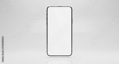 Modern Smartphone with Large Touchscreen Standing Vertically on White Background
