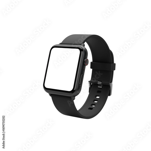Modern smartwatch with black band and dark screen displaying time or fitness data transparent background