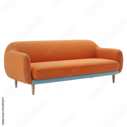 Modern Sofa with Orange Upholstery and Blue Base Against White Background