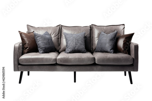 Modern sofa with pillows isolated on transparent background.for decorative at home modern interior design.generative ai