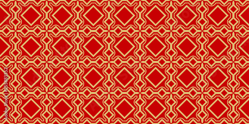 Modern Stylish Geometry Seamless Pattern Art Deco Background. Luxury Texture For Wallpaper, Invitation. Vector Illustration And Handmade Symbol. Red gold color