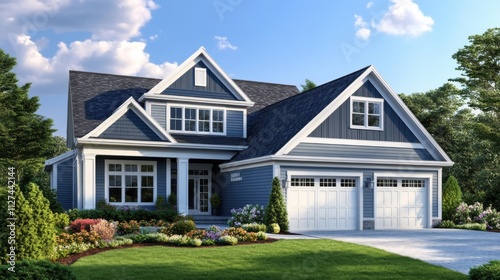 Modern suburban house with beautiful landscape
