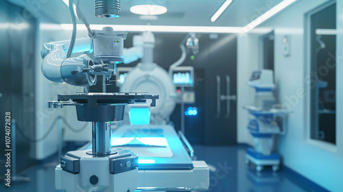 Modern Surgical Room With Advanced Robotic Assistance and State-Of-The-Art Medical Technology in a Well-Lit Facility