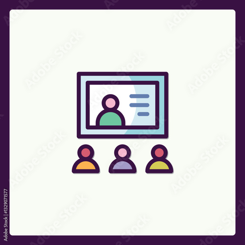 Modern Team Meeting Flat Vector Icon Illustration with Identity Card