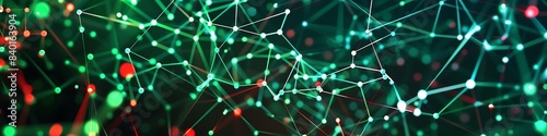 Modern technology background featuring green and red dots connected in an intricate plexus network