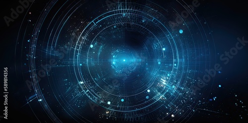 modern technology circle background or abstract image, in the style of rtx on, blueprint, circuitry, lens flare, light navy and sky-blue, Illustration Generative AI