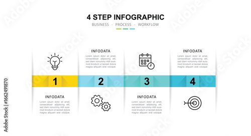 Modern template infographic with 4 step process and icons can be used for workflow, business information, presentation and data visualization