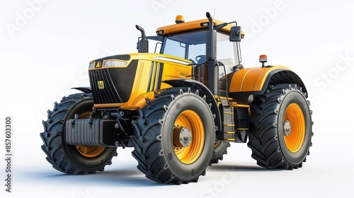 Modern tractor, agricultural vehicle, 3D realistic, isolated on white background