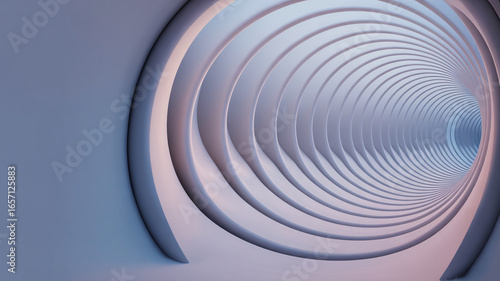 Modern tunnel perspective with layered geometric curves and soft ambient light creating futuristic movement