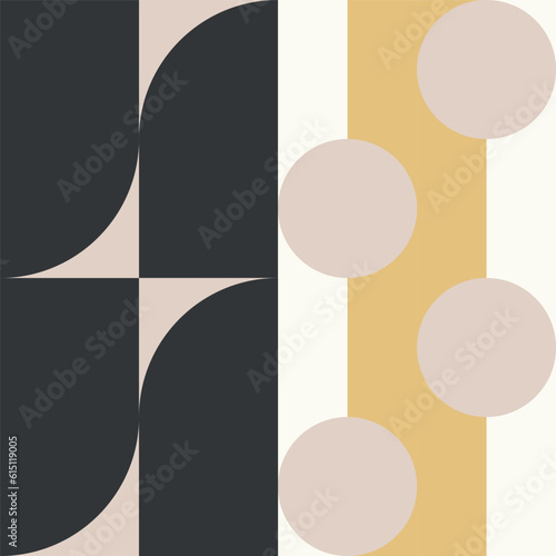 Modern vector abstract geometric background with circles, rectangles and squares in retro scandinavian style. Pastel colored simple shapes graphic pattern. Abstract mosaic artwork.