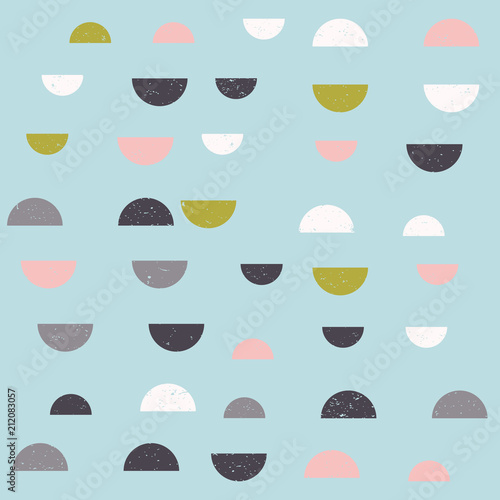 Modern vector abstract seamless geometric pattern with semicircles in retro scandinavian style. Worn out textured shapes in fun soft pastel colors combinations.