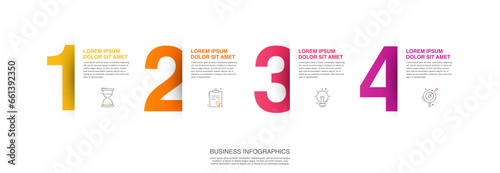Modern vector flat illustration. Line infographic numbers template with four elements, icons. Timeline designed for business, presentations, web design, interface, diagrams with 4 steps
