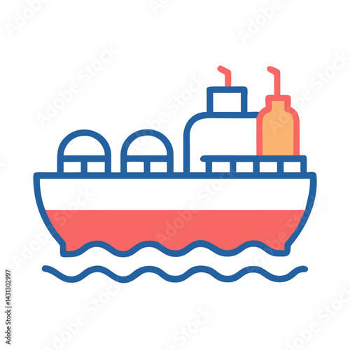 Modern Vector Oil Tanker Ship Illustration in Blue and Red