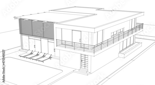 Modern villa architectural project 3d drawing