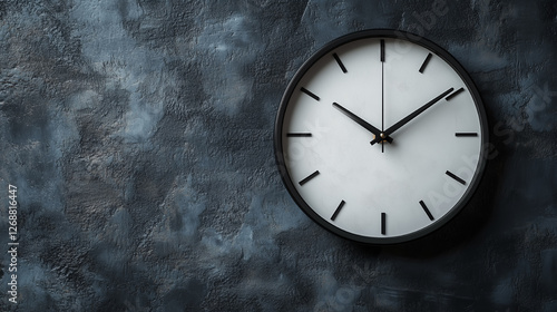 Modern wall clock displaying time on a minimalist dark textured background showing simple design and stylish decor elements. Generative AI
