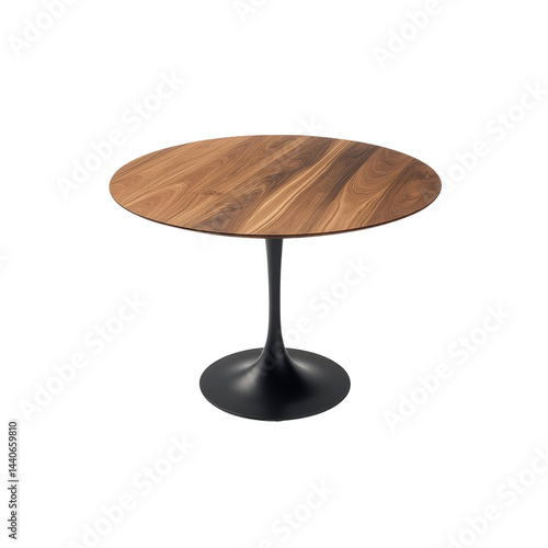 Modern Walnut Tulip Dining Table with Black Pedestal Base
