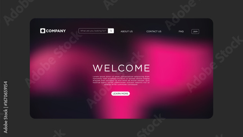 Modern welcome landing page design with vibrant pink gradient background and clean navigation elements