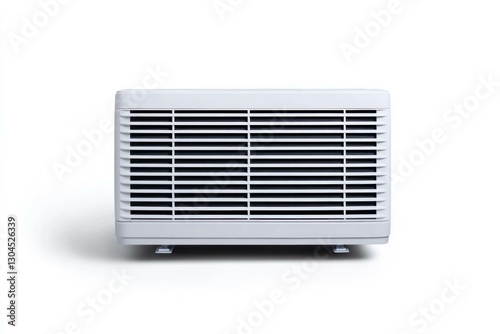Modern white air conditioner unit isolated on white background, ideal for home and office cooling, reflecting efficiency and contemporary design