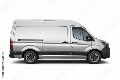 Modern white delivery van isolated on white, with empty blank space for text copy space or mockup design, high detail, 8k