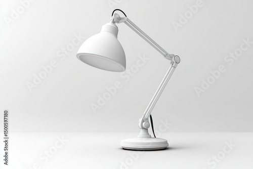 Modern white desk lamp with adjustable arm illuminating a minimalist workspace
