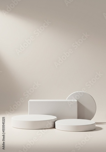 Modern White Minimal Podium with Soft Shadows and Premium Lighting – Abstract Product Display