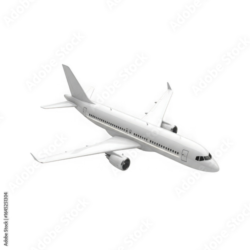 Modern white passenger jet airplane flying with wings extended isolated on transparent background