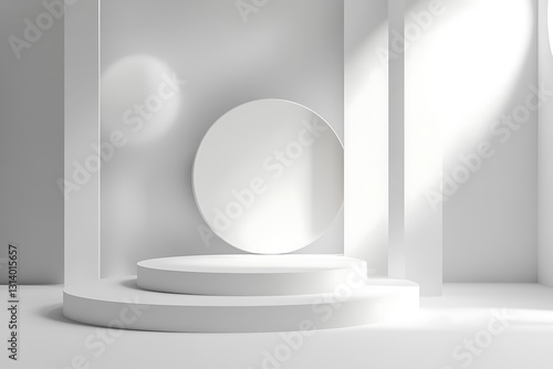 Modern White Podium Display with Arched Background for Product Showcases