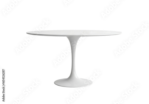 Modern white round pedestal dining table, elegant contemporary furniture. Isolated on transparent background, png