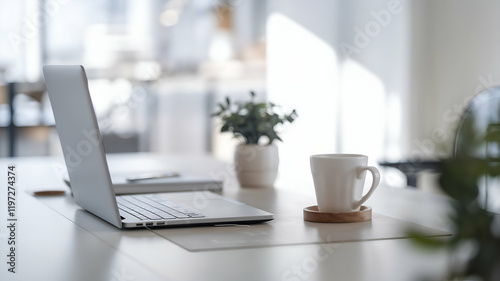 Modern Workspace with Laptop. Bright, clean desk setup for productive work.