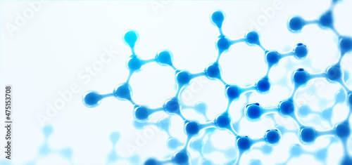 Molecular lattice, nano structure and microbiology. Abstract molecule model. Scientific research, molecular chemistry. 3D illustration on a light blue medical background