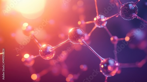 Molecular model with interconnected atoms and glowing edges, floating in a gradient background, symbolizing the complexity of chemistry.