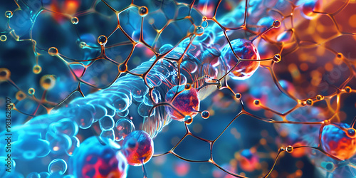 Molecular network with glowing particles, Close-up of molecular grid with light effects