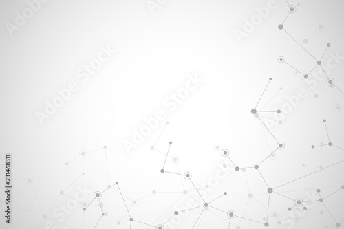 Molecular structure background and communication or neural network. Abstract background of molecules DNA. Medical, science and digital technology concept with connected lines and dots.