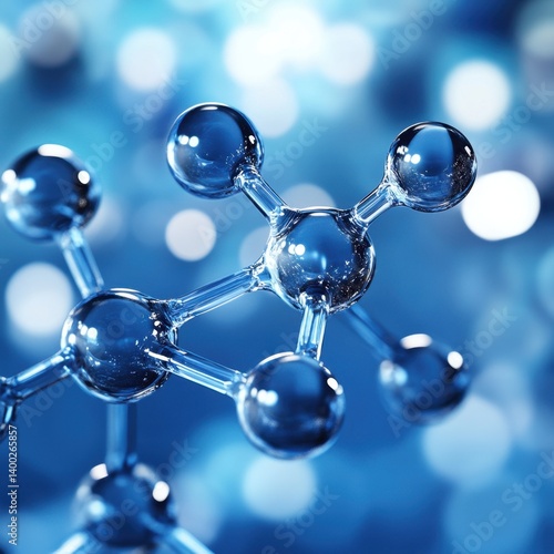 Molecular structure in vibrant blue tones representing scientific research and medical advancement with a bokeh background
