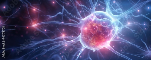 Molecular structure of cancer , blood, bacteries cells, banner, inside view of healthy humany body. Generative Ai.