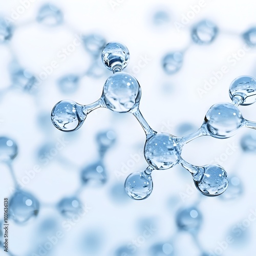 Molecular Structure of Shimmering Light Blue Water Droplets on White Background