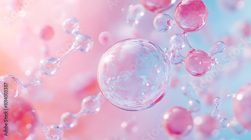 Molecule inside a transparent liquid bubble on a soft background, representing a skincare cosmetics solution