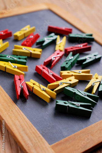 mollette colorate sulla lavagna nera