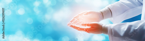 Moment depicting hands open to receive light, symbolizing hope, healing, and positivity in tranquil blue background.