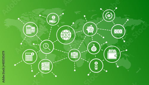 Money and Banking promotion icons illustration. Credit Card, Currency Exchange, Atm, Terminal line icons banner. Vector illustration in line style.
