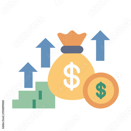 Money bag and coin stacks depicting investment growth